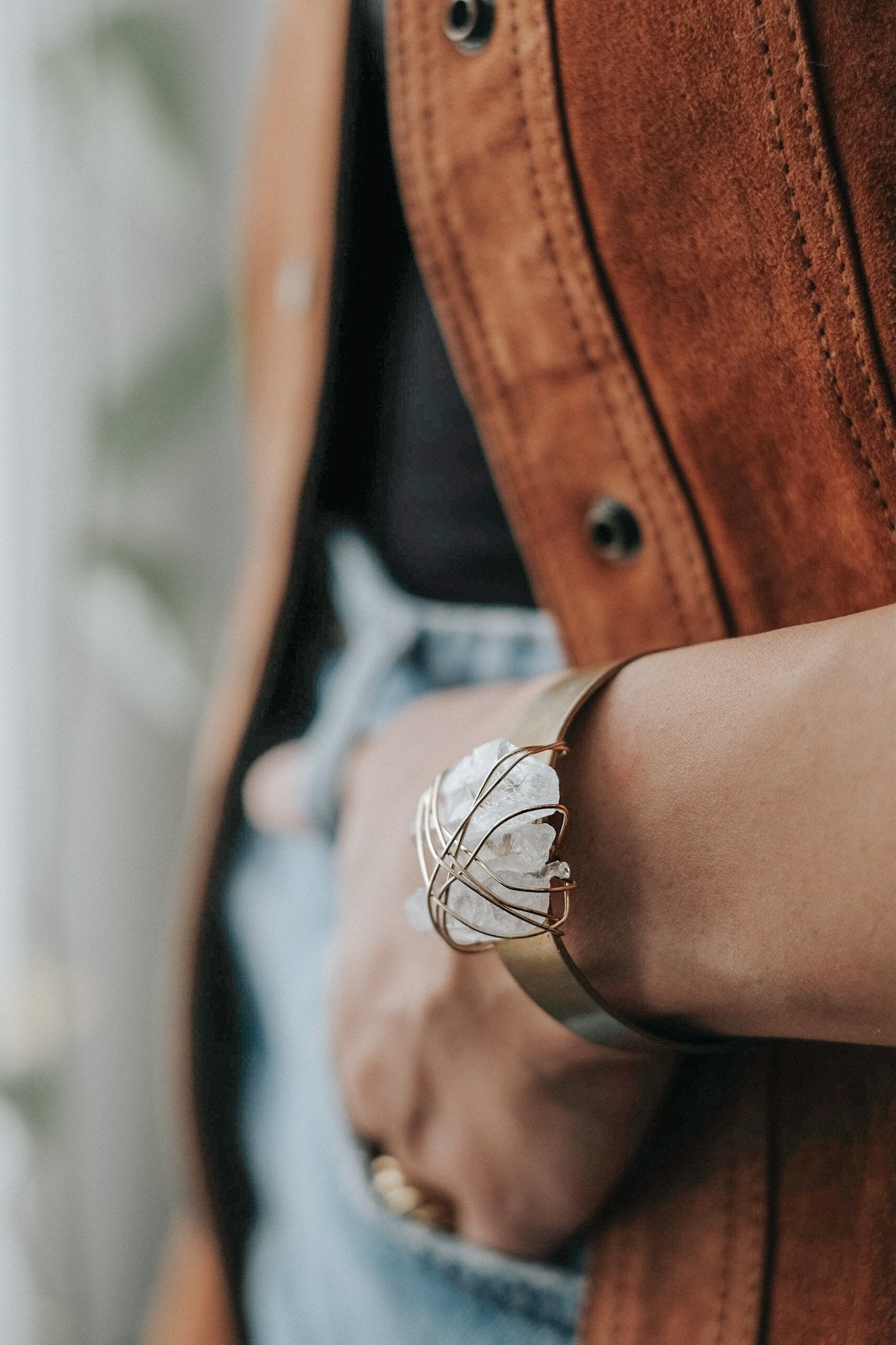 Check her outOur signature cuff, named after the exquisite rain forest in Puerto Rico. This brass gold cuff is wired with powerful clear quartz crystals giving you that extra strength for any venture.